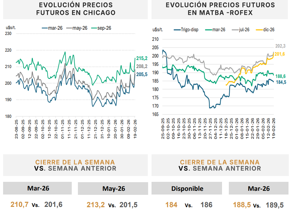 En el plano local del mercado de granos, el trigo disponible se negoció en torno a los 184-186 dólares por tonelada, también con premios sobre la paridad teórica. La Secretaría de Agricultura elevó su estimación de producción a 27 millones de toneladas y ajustó al alza el saldo exportable a 18,5 millones, lo que refuerza el dinamismo comercial.