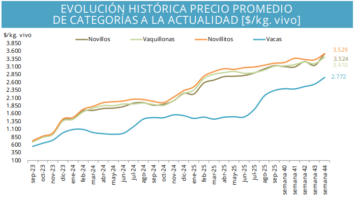 A esto se suma el mejor clima, que favorece la logística y el estado corporal de los animales, y una mayor previsibilidad comercial por parte de los compradores, que se preparan para atender una demanda estable en la antesala de fin de año. En este marco, la plaza se mantiene sólida, con escasas oscilaciones y buena relación entre oferta y absorción.