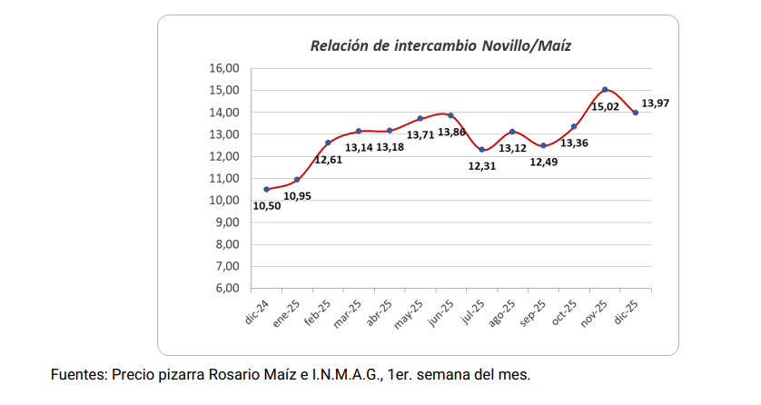 No obstante, la mejora en los indicadores operativos todavía no alcanza para revertir el resultado económico. El margen bruto estimado por la CAF para diciembre de 2025 arrojó un déficit equivalente a 5,6 kilos de novillito terminado, antes de intereses e impuestos. Si bien se trata de una mejora respecto del rojo de 7,7 kilos registrado en noviembre, el negocio continúa mostrando números ajustados.