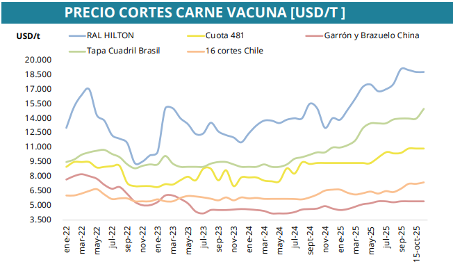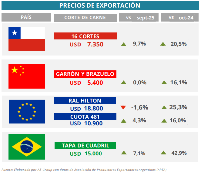 Según el informe de AZ Group y deCampoaCampo, el mercado ganadero online más grande del país., los precios internacionales de la carne argentina experimentaron una mejora moderada en los últimos días, impulsada por la demanda asiática y una mayor estabilidad económica global. Aun así, los valores se mantienen por debajo de los máximos del primer semestre del año, en un contexto donde la oferta mundial sigue creciendo.