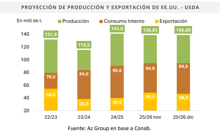 En Estados Unidos, el informe trajo una señal positiva: las exportaciones fueron incrementadas en 3 millones de toneladas, alcanzando las 81,3 millones. Este dato refuerza el rol del maíz estadounidense como proveedor clave en el comercio global y aporta sostén a los precios en Chicago.