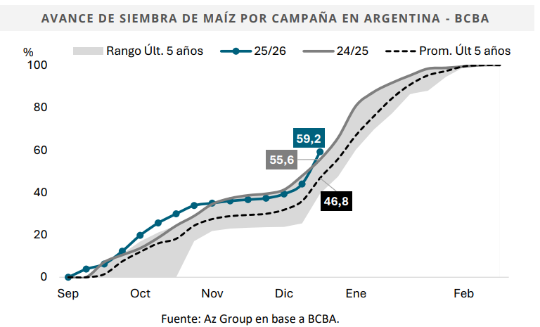 En Argentina, el USDA sostuvo la proyección de 53 millones de toneladas, en un contexto de buen avance de siembra y perfiles de humedad favorables. Este escenario posiciona al maíz como un cultivo con mejor equilibrio relativo frente a la soja, tanto desde lo productivo como desde lo comercial.
