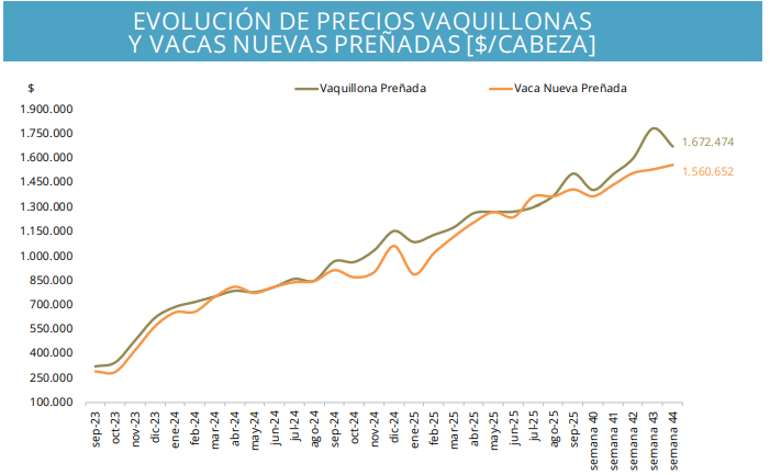 El mercado de cría mostró durante la última semana de octubre una continuidad en el escenario de firmeza que comenzó a notarse en la segunda mitad de octubre. Los valores de las principales categorías —particularmente las vacas nuevas con cría y las vaquillonas preñadas— registraron aumentos respecto de la semana anterior, impulsados por una mejora en la demanda y por el efecto de las lluvias que consolidaron las pasturas en gran parte del país, según el informe de AZ Group y deCampoaCampo, el mercado ganadero online más grande del país.