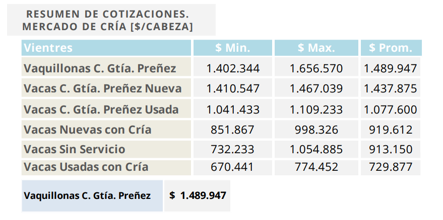 De cara al inicio de la primavera plena, el mercado de cría mantiene expectativas positivas. Los vientres preñados se sostienen como la categoría más demandada, las vacas con cría al pie encuentran buena salida y hasta las categorías sin servicio despiertan interés.