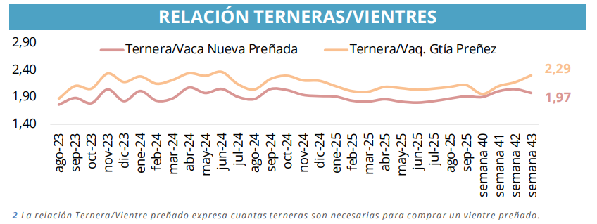 Mientras la oferta continúa siendo relativamente contenida, la demanda se muestra más selectiva, particularmente en lo referido a la calidad reproductiva y el estado corporal de los vientres. Los establecimientos que llegaron a la primavera con buena disponibilidad de pasto o reservas están apostando a retener hembras, mientras que aquellos afectados por sequías anteriores están definiendo ventas estratégicas para aliviar carga de los campos.