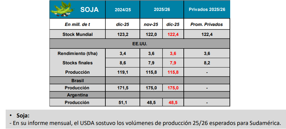 En soja, la estabilidad del USDA refuerza la idea de un mercado sin sobresaltos, altamente dependiente del clima sudamericano. En maíz, los ajustes recientes aportan algo más de sostén, pero sin cambiar de forma estructural el balance.