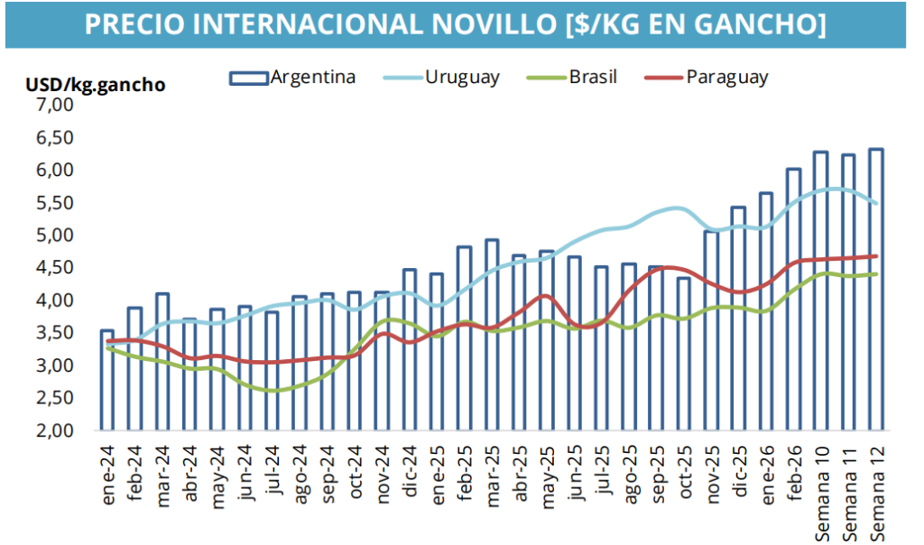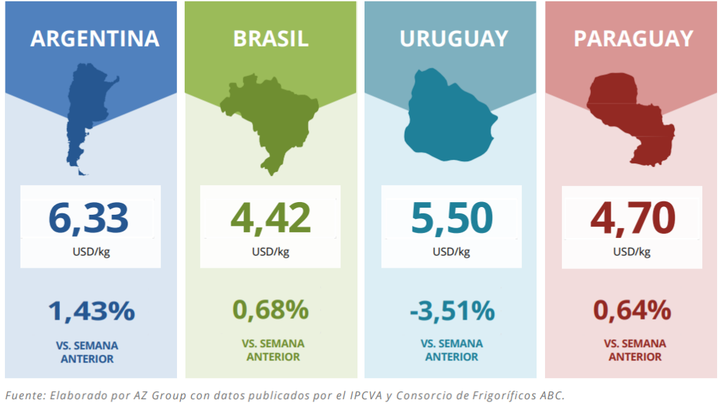 De acuerdo con el informe ganadero de la semana de AZ Group y deCampoACampo, el precio del novillo argentino en gancho se ubicó en US$6,12 por kilo carcasa, consolidándose como el valor más alto del Mercosur.