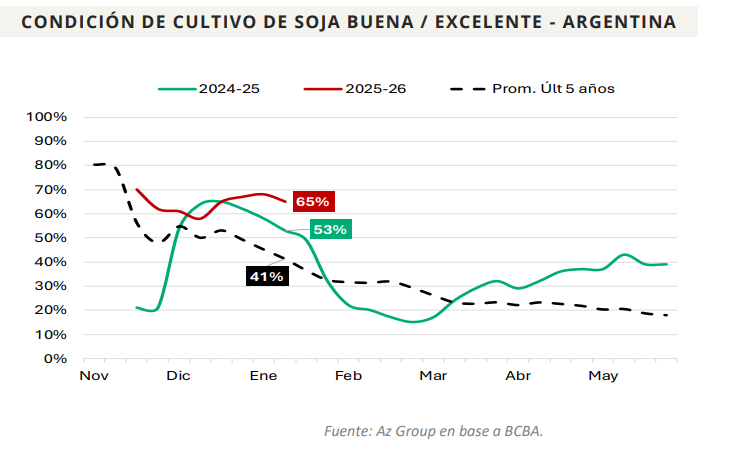 Sin embargo, la evolución del cultivo todavía dependerá del comportamiento climático durante el período crítico. Aunque los indicadores agronómicos son alentadores, el mercado sigue atento a posibles eventos de estrés hídrico o térmico que puedan modificar las estimaciones actuales.